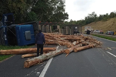 Quatro morrem após carga de madeira cair de caminhão e atingir carro na BR-376, em Tibagi
