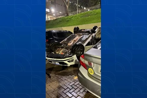 Carro cai em estacionamento de faculdade e atinge outros dois veículos, no PR