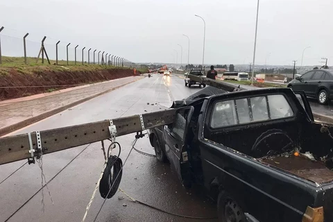Carro é atingido por poste que caiu por conta de rajadas de vento em Guarapuava