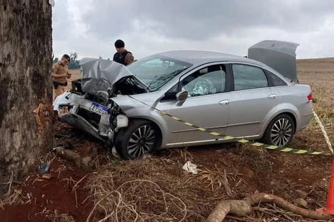 Carro sai da pista e bate contra árvore na BR-476, em São Mateus do Sul; uma pessoa morreu