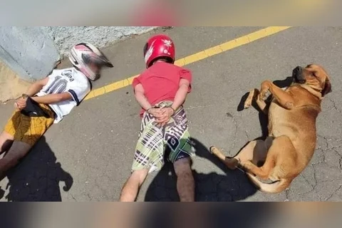 Cão deita ao lado de suspeitos durante abordagem policial no Paraná, e foto viraliza: 'Cachorro foi parceiro dos caras', diz PM