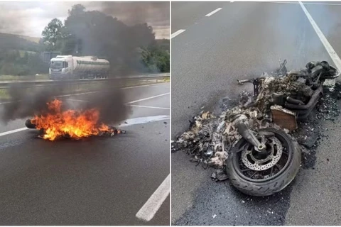 Moto BMW fica completamente destruída após pegar fogo na BR-376, no Paraná
