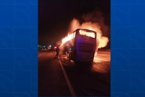 Ônibus com 32 passageiros fica totalmente destruído após pegar fogo, no Paraná