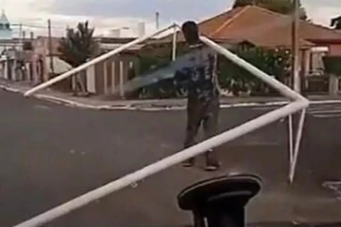 Homem rouba trave de campo e sai carregando ela no meio da rua, em Castro