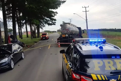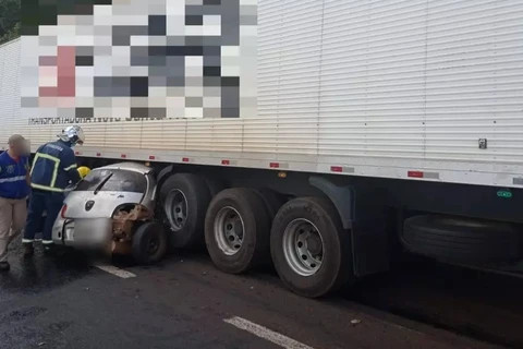 Mulher morre ao bater em placa e ‘entrar’ na lateral de caminhão