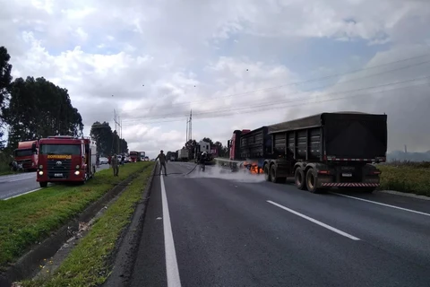 Caminhão pega fogo e interdita parte da BR-376, em Palmeira