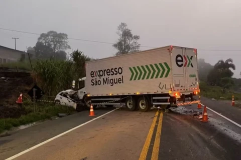 Duas pessoas morrem em acidente entre carro e caminhão na BR-476, no Paraná