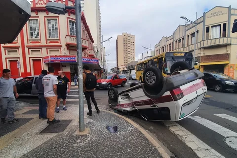 Carro capota após ser atingido por veículo que furou sinal vermelho no Centro de Ponta Grossa