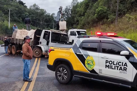 Polícia investiga circunstâncias de acidente que matou caminhoneiro soterrado pela própria carga, no Paraná