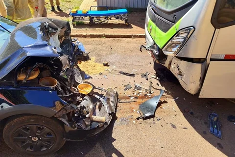 Motorista morre após bater em um ônibus no Paraná; suspeita é que ele teve mal súbito e perdeu o controle do veículo, dizem bombeiros