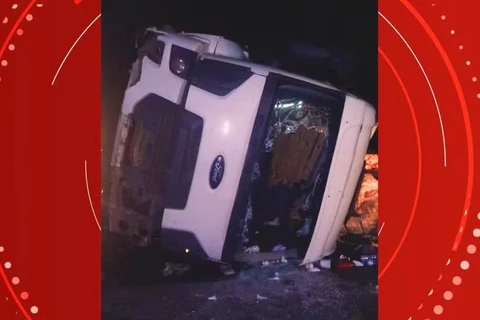 Caminhão tomba na pista contrária e interdita trecho de rodovia entre Piraí do Sul e Castro