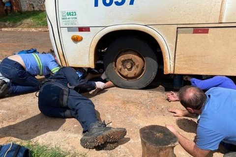 Criança de 10 anos é atropelada por micro-ônibus e fica presa debaixo do veículo