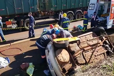 Carro capota e criança de colo fica presa às ferragens, no Paraná