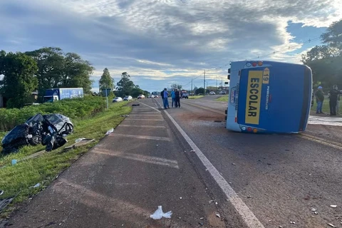 Batida entre micro-ônibus escolar e carro deixa idoso morto e outras duas pessoas gravemente feridas no Paraná