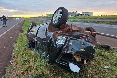 Cinco pessoas que estavam em carro que reduziu a velocidade para ver acidente no PR, foi atingido na traseira e capotou ficaram feridas, diz polícia