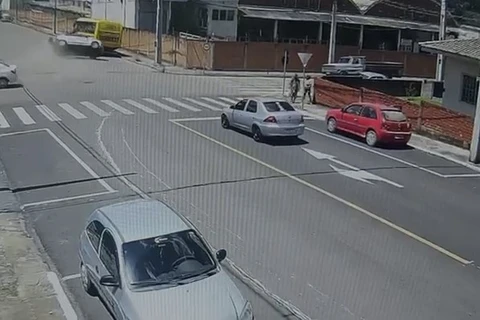 Vídeo registra acidente com tombamento no Centro de Piraí do Sul