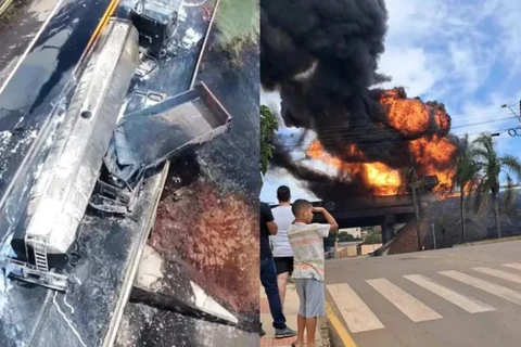 VÍDEO: motorista se joga de veículo em chamas e pula de cima de viaduto após caminhão explodir em acidente em rodovia do Paraná