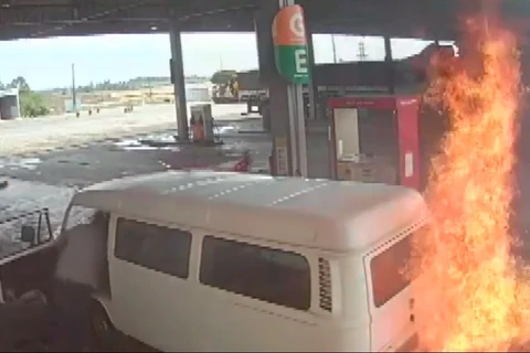 Kombi pega fogo em posto de combustíveis no Paraná