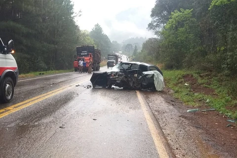 Homem morre e 3 pessoas ficam feridas em acidente entre carro e caminhão, em Jaguariaíva