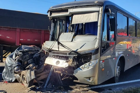 Duas pessoas morrem após carro ser prensado entre ônibus e caminhão, em Castro