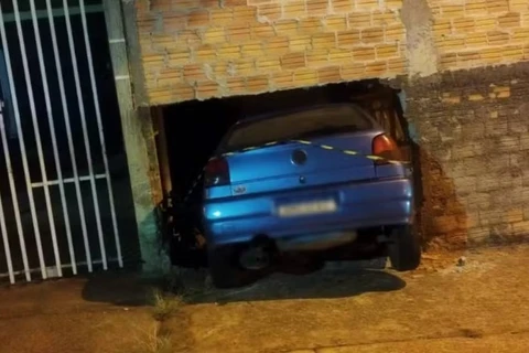 Carro com crianças no porta-malas atravessa muro de casa e deixa feridos em Ponta Grossa