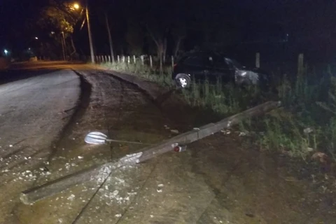 Carro bate e derruba poste no bairro das Brotas, em Piraí do Sul