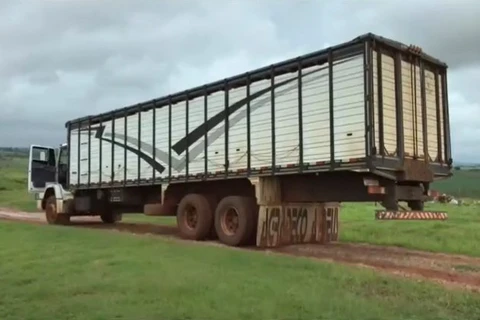Caminhão carregado de soja não consegue subir rua e fica travado após acidente, em Ponta Grossa