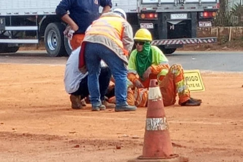 Trabalhador atingido por rodado de caminhão na Souza Naves passa bem