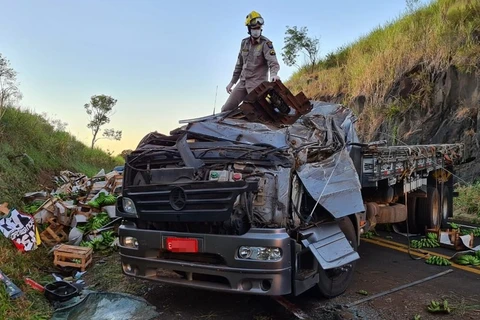 Caminhoneiro morre após veículo bater em barranco e capotar na PR-170