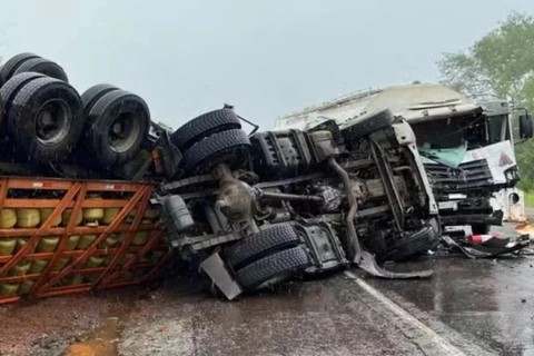 Pai e filho morrem em acidente com caminhão carregado de botijões de gás no PR