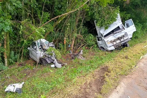 Acidente grave entre dois carros e caminhão deixa um morto e três feridos na BR-153, no Paraná