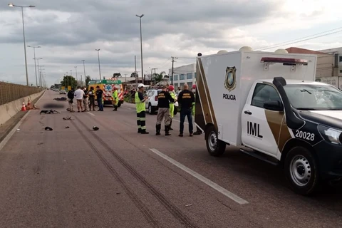 Pedestre é morto atropelado por motocicleta após tentar atravessar rodovia fora da passarela; motociclista também morreu