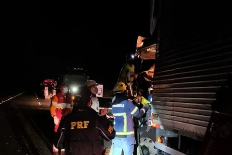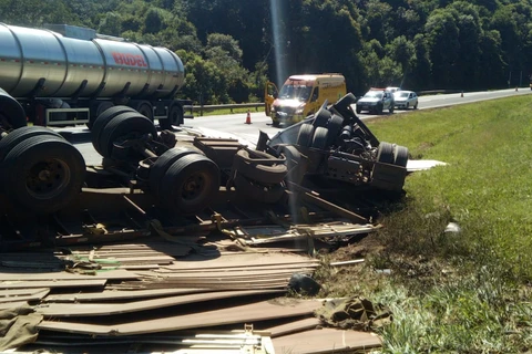 Caminhoneiro fica preso nas ferragens após acidente na BR 376, em Ponta Grossa