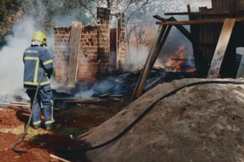 Casa fica totalmente destruída após incêndio em Ponta Grossa