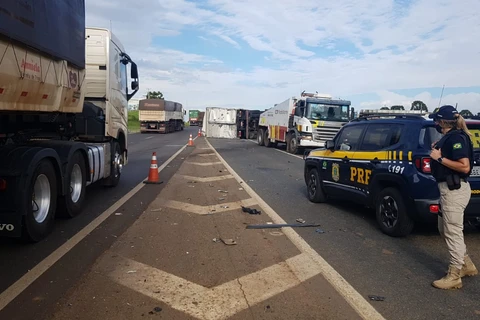 Caminhoneiro fica em estado grave após capotar caminhão para não atingir automóvel