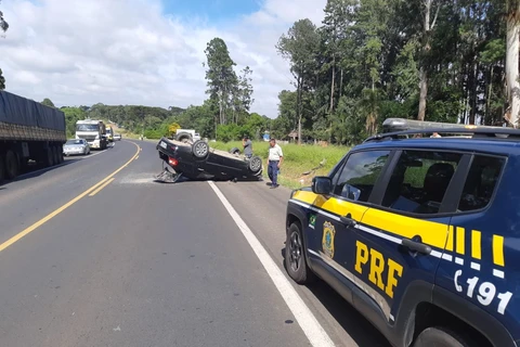 Motorista fica ferido em capotamento em rodovia de Ponta Grossa