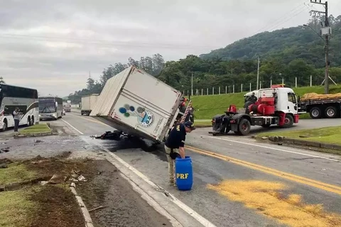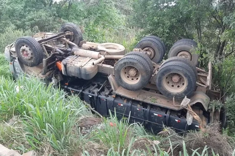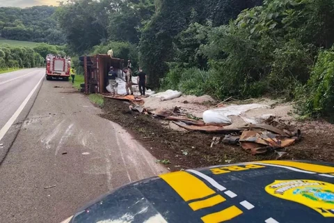 Caminhoneiro capota após desviar de congestionamento e evitar engavetamento na BR-376, em Ponta Grossa