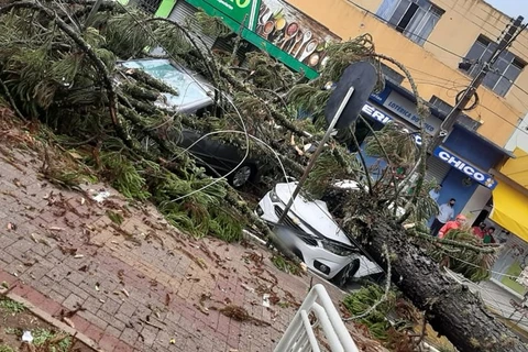 Árvore cai e atinge quatro carros em avenida de Telêmaco Borba