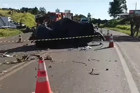 Acidente grave entre dois carros e caminhão deixa um morto e três feridos na BR-153, no Paraná