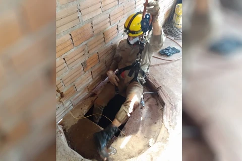 Pai pula em cisterna pra salvar a filha e eles precisam ser salvos pelos bombeiros