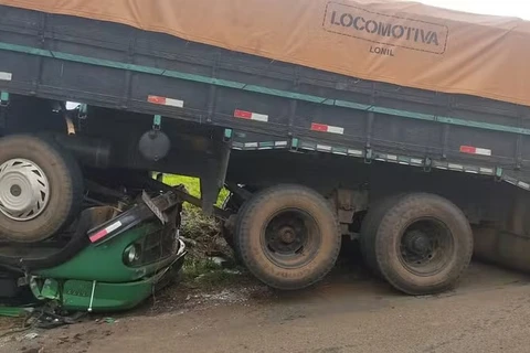 Carroceria de caminhão se solta durante viagem e esmaga cabine com caminhoneiro no Paraná; homem sobreviveu