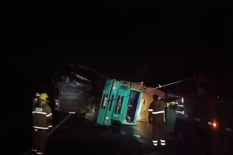 Caminhões se envolvem em acidente com tombamento na BR-376, e rodovia está interditada há mais de 13 horas no Paraná