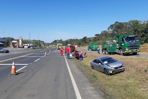 Acidente com três veículos deixa duas pessoas feridas na BR-376