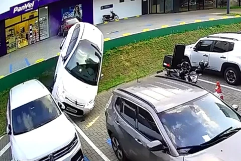 Mulher passa mal ao chegar em estacionamento de farmácia e capota carro
