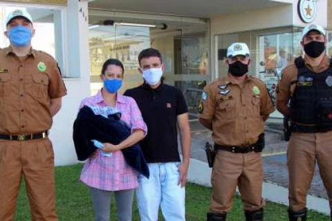 Bebê engasgado com leite é socorrido por policiais militares, em Curitiba