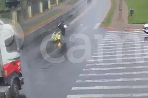 Motoboy pula de moto e se salva de ser atropelado por caminhão em Carambeí