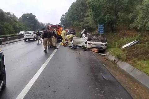 Duas pessoas morrem após carro bater em estrutura de praça de pedágio desativada