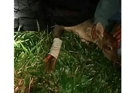 PRF socorre cervo atropelado na BR-373, em Ponta Grossa