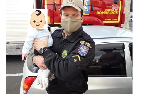 Mãe tranca acidentalmente carro com bebê de 4 meses dentro e bombeiros conseguem abrir veículo e tirar a criança