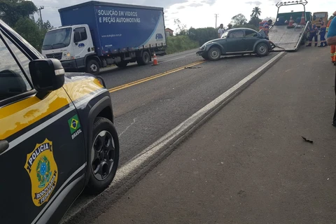 Idosos ficam gravemente feridos em acidente entre dois carros e um caminhão na BR-277, em Palmeira